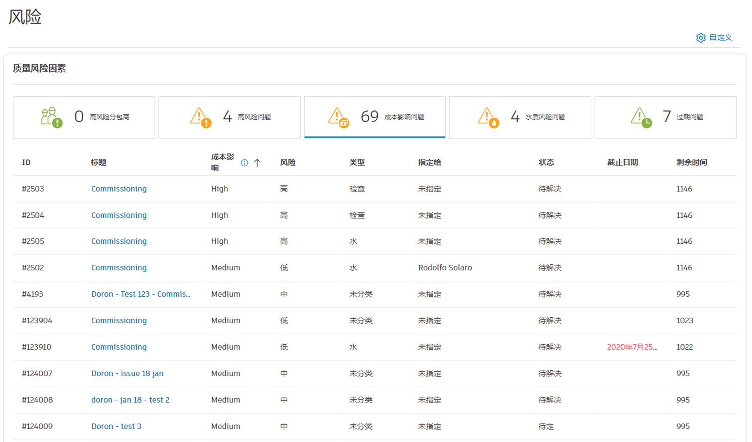 成本对于任何项目都是非常重要的方面。“成本影响问题”因素使项目经理能够评估哪些未解决的质量问题对成本影响最大。然后,他们可以优先处理这些问题以避免超出预算(并且可能会影响项目结果)。