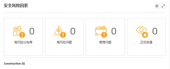 高安全风险分包商:查看所有具有高安全风险的分包商,以及对每个分包商的高安全风险问题总数、正观测值和管理问题的细分。