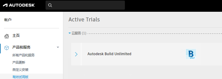 请访问 Autodesk Account 页面以查看试用版的状态。登录后,切换到顶部的“产品和服务”选项卡,然后单击“试用版”子选项卡,以查看试用版以及剩余天数。