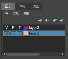 在默认的 Maya Creative 布局中,通过单击选项卡,可以在“显示层编辑器”(Display Layer Editor)与“动画层编辑器”(Animation Layer Editor)之间进行切换。