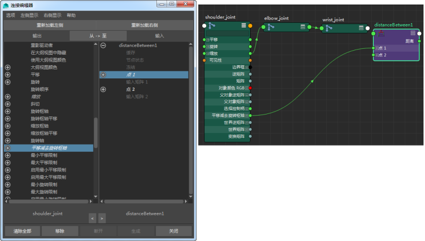 使用“连接编辑器”(Connection Editor)连接两个对象的节点