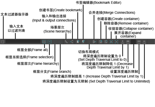 将语法输入到“文本过滤器”(Text FIlter)图标旁的文本框中,以限制“Hypergraph”中列出的节点。语法区分大小写。例如,P* 只显示以字母 P 开头的节点。 注: 即使父节点可能由于过滤器而不显示,列出的每个子节点也会对应其父节点显示。