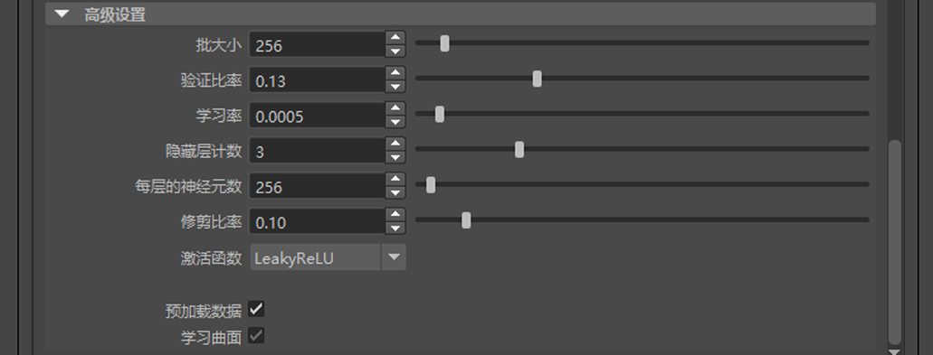 激活以在训练过程中将所有训练数据加载到内存中,而不是批量加载。如果训练数据集能够完全放入内存中,则建议启用“预加载数据”(Preload Data),因为这样会使训练过程明显加快。