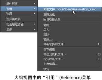 有关“引用”(Reference)菜单选项的信息,请参见“大纲视图”(Outliner)上下文菜单。