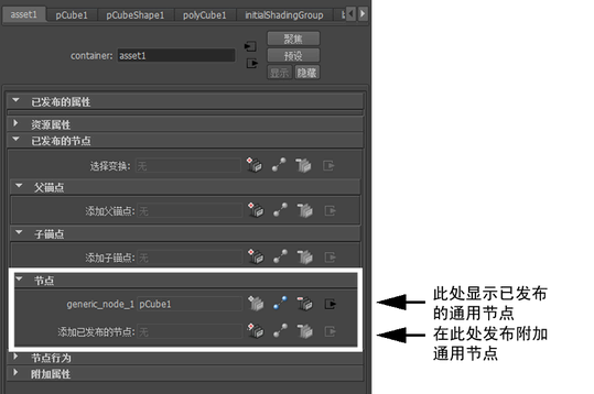 Maya 会采用指定的已发布名称将该节点发布到资产。