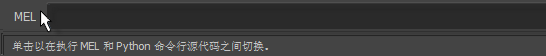 也可在命令行输入简短的 Python 命令。通过切换可选择输入 MEL 命令或 Python 命令。