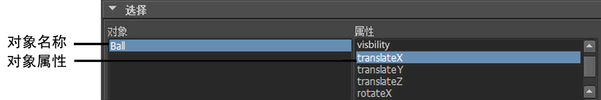 若要为未显示在列表中的任何不可设置设定关键帧的属性编写表达式,请在“选定对象和属性”(Selected Obj & Attr)文本框中输入“object.attribute”名称。