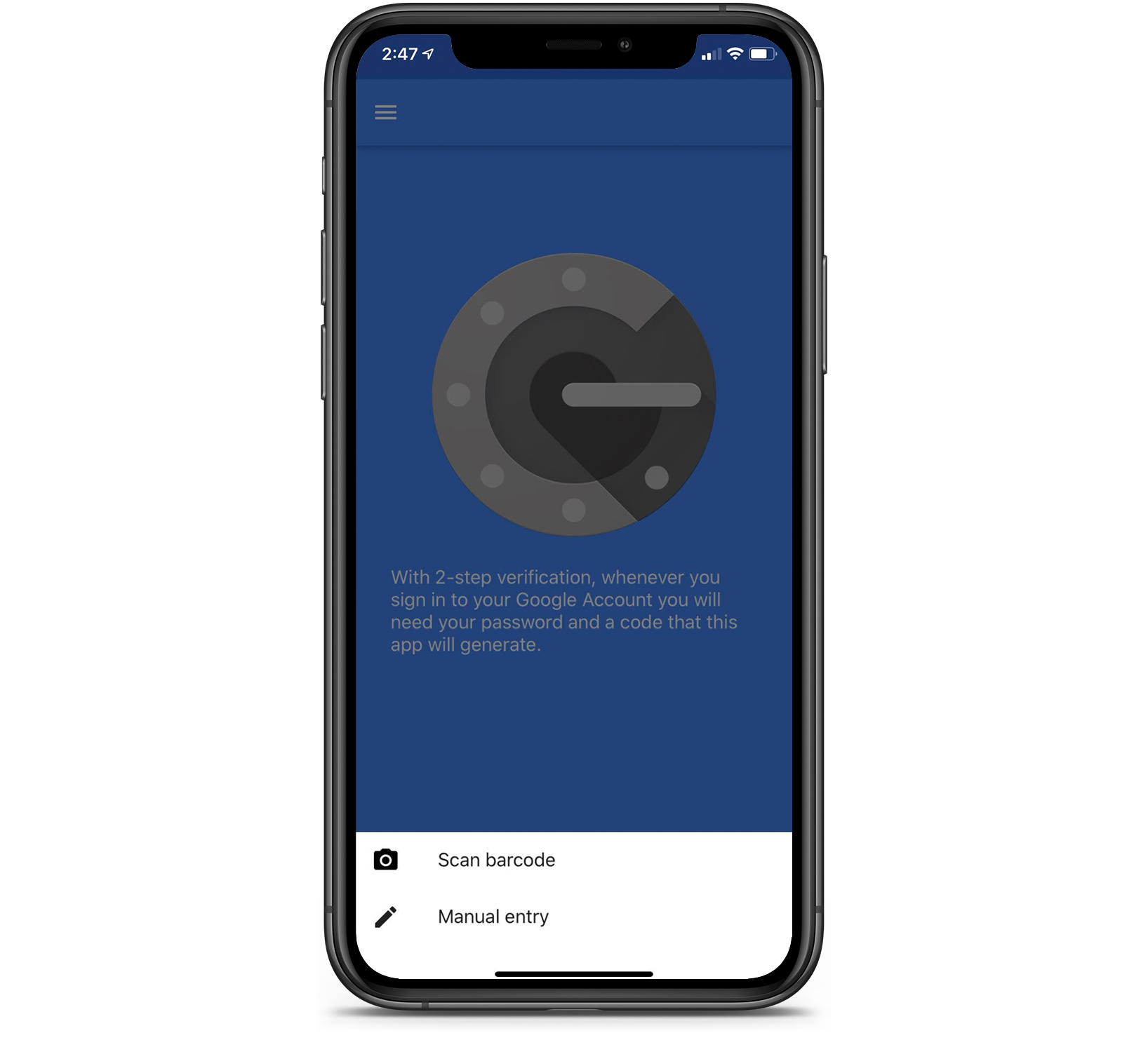点击“手动输入”,使用设备的屏幕键盘输入32位身份验证密钥代码。
