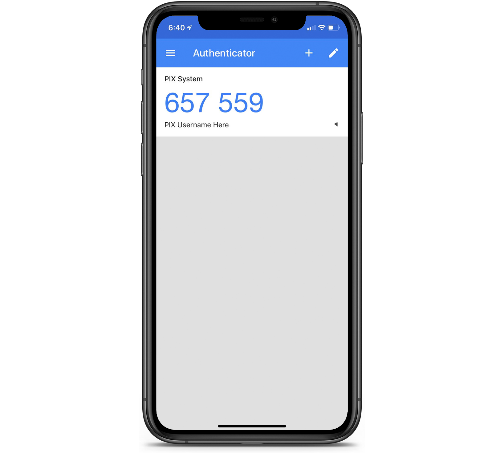 然后,该应用将显示一个代码以登录到您的PIX帐户。