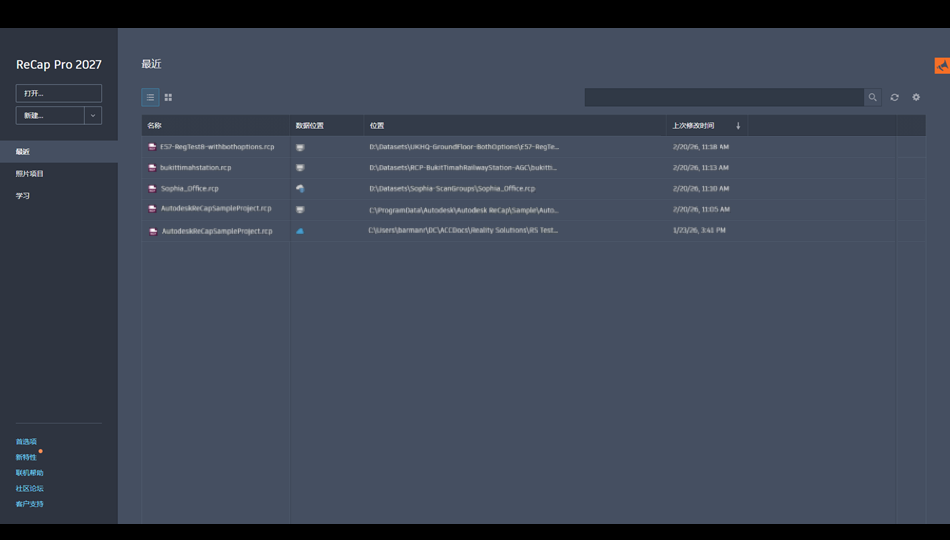 新的 ReCap 主页提供了更多查看、排序和查找模型的方法。新主页还与工程建设软件集套件中的其他产品保持一致。