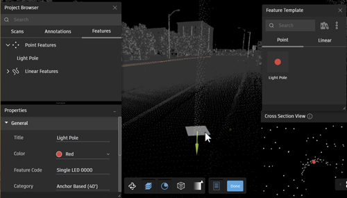 在 ReCap 查看器中,定义、优化和提取点云数据中的线性要素元素。