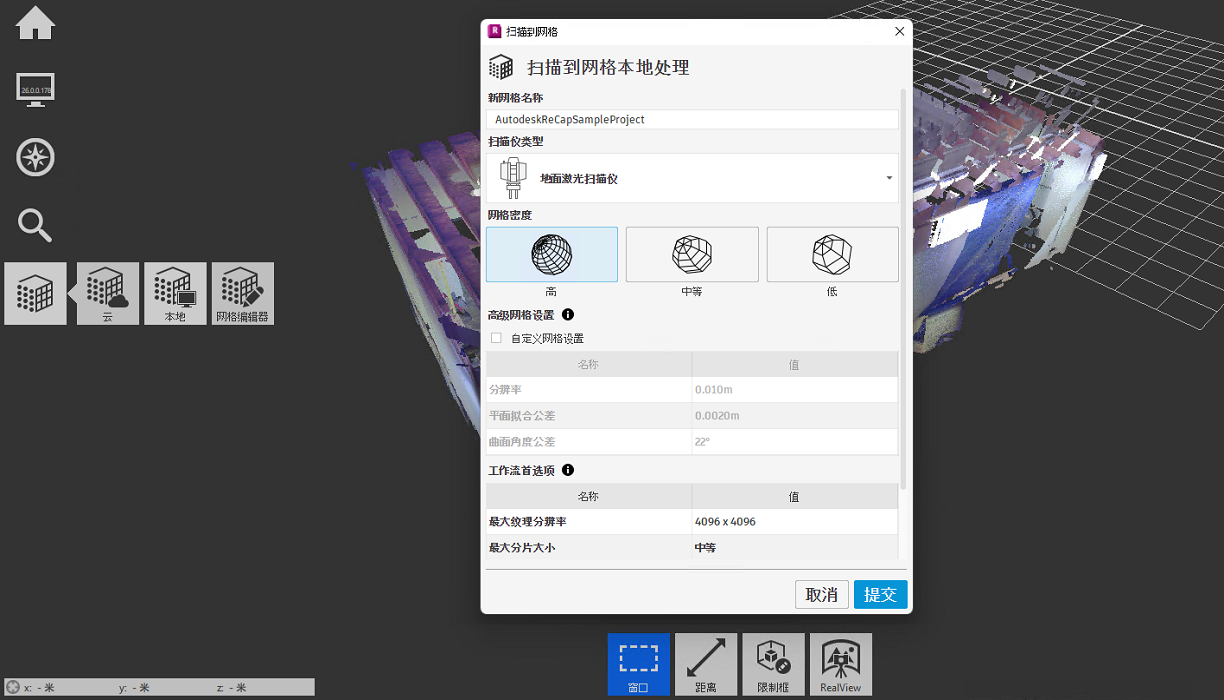 直接在桌面上将点云转换为分段网格模型。