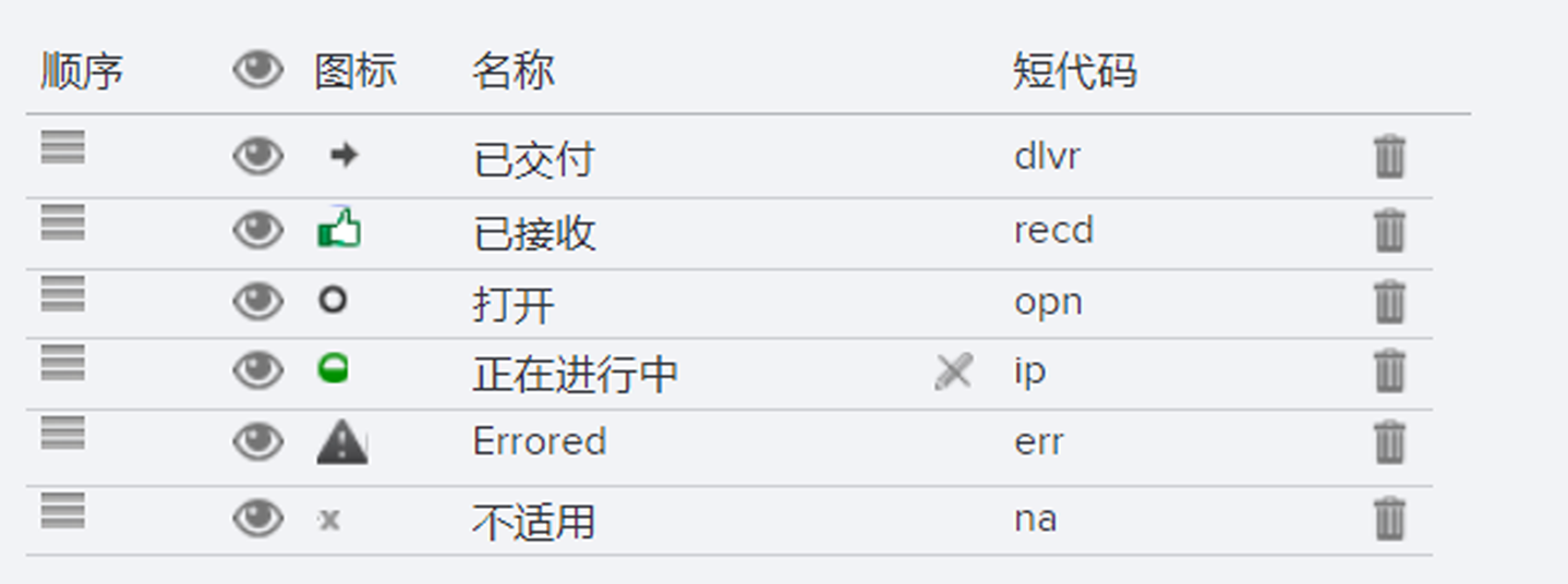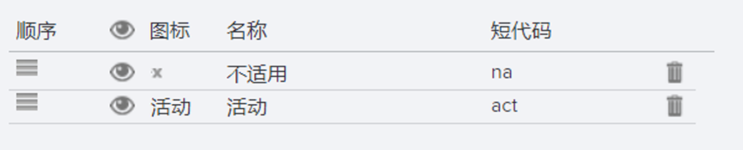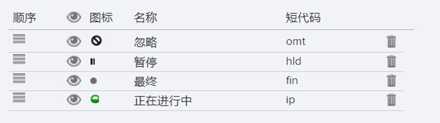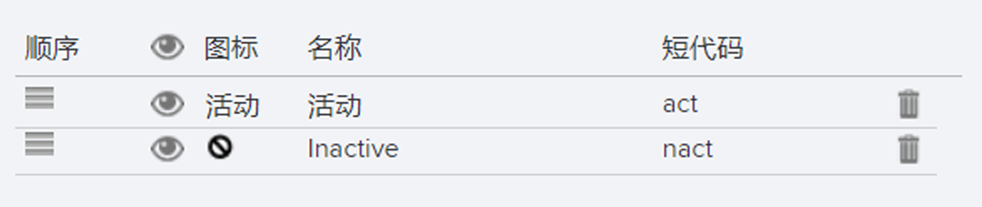这是“状态列表”(Status List)类型字段,包含以下基本选项: