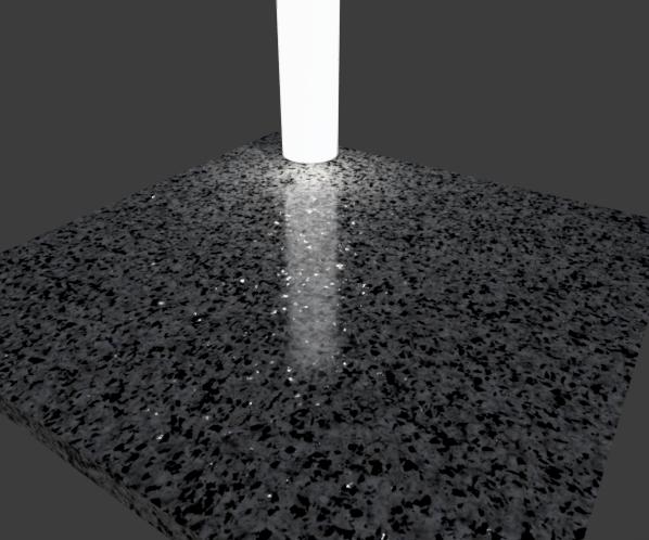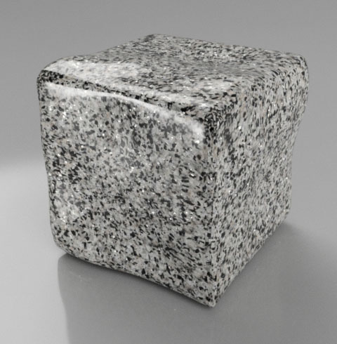 ![]() 「表面塗層顏色」使用一種建立不反射光的坑洞,並且讓花崗石粒子產生隨機變化的材質 |