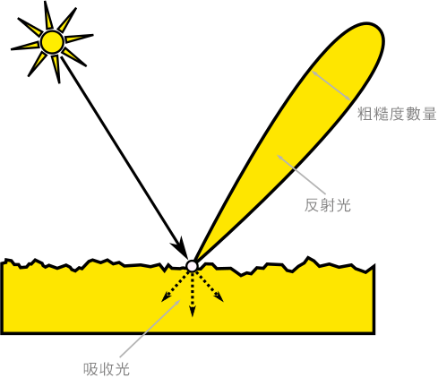 沒有光線會反射為漫射光。這使得金屬有很強的反射特性,而且讓金屬的反射顏色也是表面本身的可見顏色。