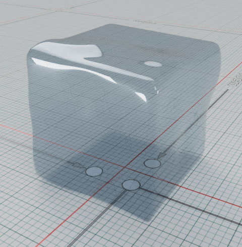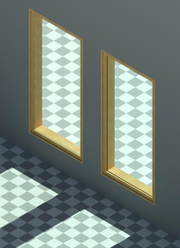 它也不會折射,因此光線會以直線穿過。對於建築用的玻璃表面,這類簡化不會真的影響彩現結果,但如果套用到其他實體造型,看起來就會不真實。