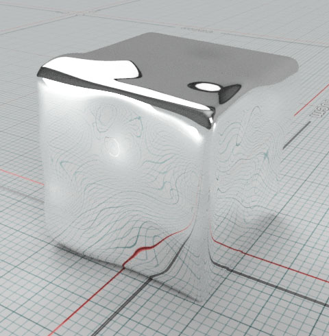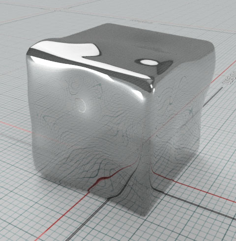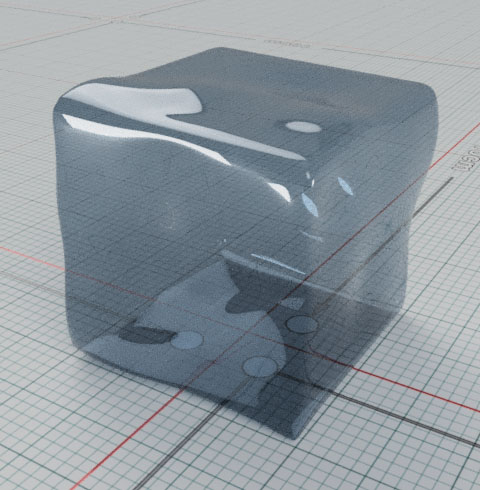 ![]() 實體物件上的釉面玻璃。請注意透射顏色是固定的,而且沒有折射。 |