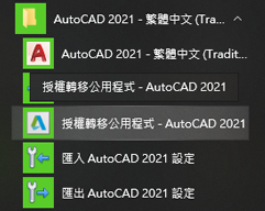 - Windows。在「開始」功能表中尋找 LTU 捷徑,其與要移轉的 Autodesk 產品位於相同的資料夾中。