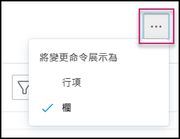 若要將變更命令展示為欄,請按一下三點功能表並選取該視圖。