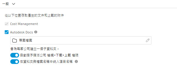 - 從 Autodesk Docs 附加:從「檔案」工具選取文件。您可在「設定」工具的「成本管理中的文件與附件」區段使用此選項。