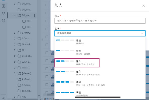 - 從文件樣板產生:從既有樣板建立文件。預設樣板會顯示為清單中的第一個樣板。專案管理員可在「設定」工具建立文件樣板。