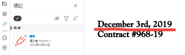 您可以將標記加入至 PDF 文件。例如,在核准工作流程審閱過程中,這可能很有幫助。