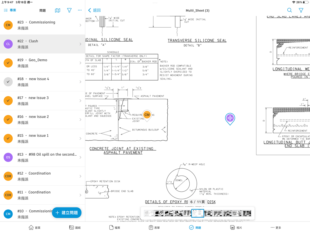 使用 iOS 裝置上的 Autodesk Construction Cloud 行動應用程式,來建立、檢視和編輯問題。瞭解如何在行動裝置上的檢視器中處理問題。