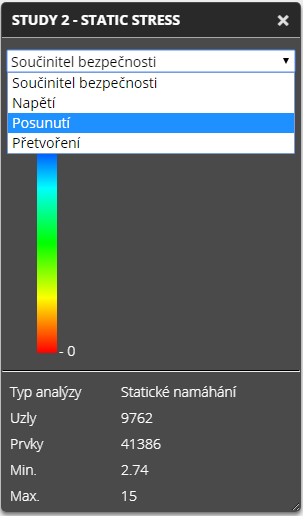 V současné době nejsou v prohlížeči podporovány výsledky těchto studií: nelineární statická pevnostní analýza a simulace událostí.