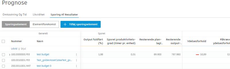Det valgte budget tilføjes som et sporingselement med en automatisk tildelt forekomst, hvor du kan planlægge input og output samt spore reelle resultater og se, hvor godt din arbejdsstyrke klarer sig.