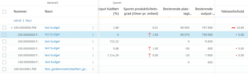 Den planlagte produktivitetsforhold er f.eks. tre timer pr. installation af et vindue. Hvis det registrerede produktivitetsforhold er to timer pr. vindue, er forholdet større end 1, og dit team klarer sig bedre end forventet.