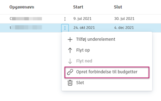 Sådan knytter du en tidsplansarbejdsopgave til et budgetelement: