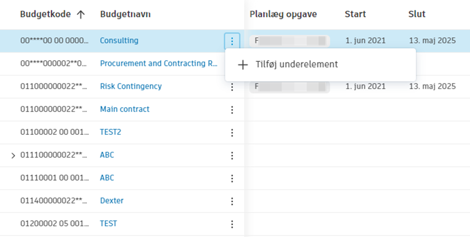 Hvis budgetdatoerne imidlertid ændres manuelt eller afviger fra planlægningsarbejdsopgavedatoerne, opdateres datoerne for budgetelementerne ikke automatisk.