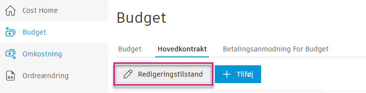 Slå funktionen til for at få vist kolonner med budgetprognoser og tillade budgetprognosejusteringer. Det anbefales, når du bruger en bygherrekontrakt på regningsbasis.