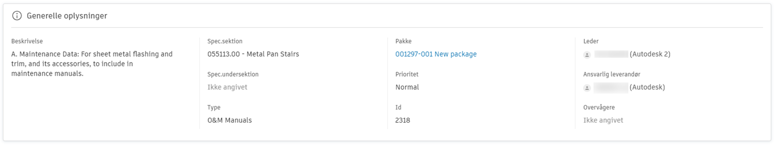 Dette afsnit indeholder grundlæggende oplysninger om indsendelseselementet, f.eks. beskrivelse, type og kravgruppe.