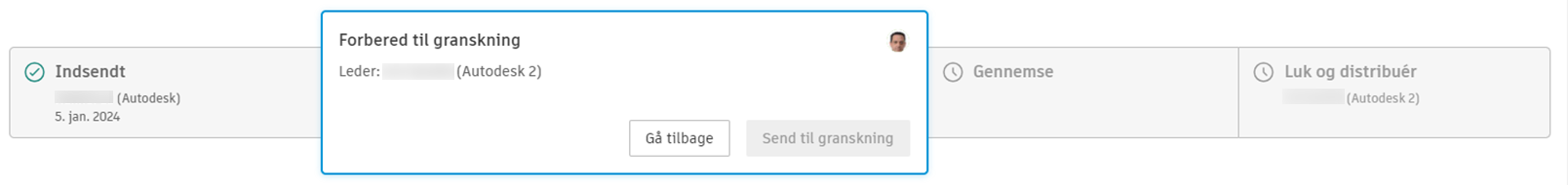 Der står også "Har svaret: X" på linjen for at angive, hvor mange granskere der allerede har angivet deres svar i det aktuelle granskningstrin.