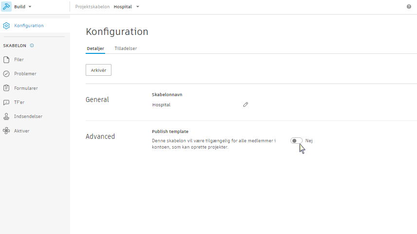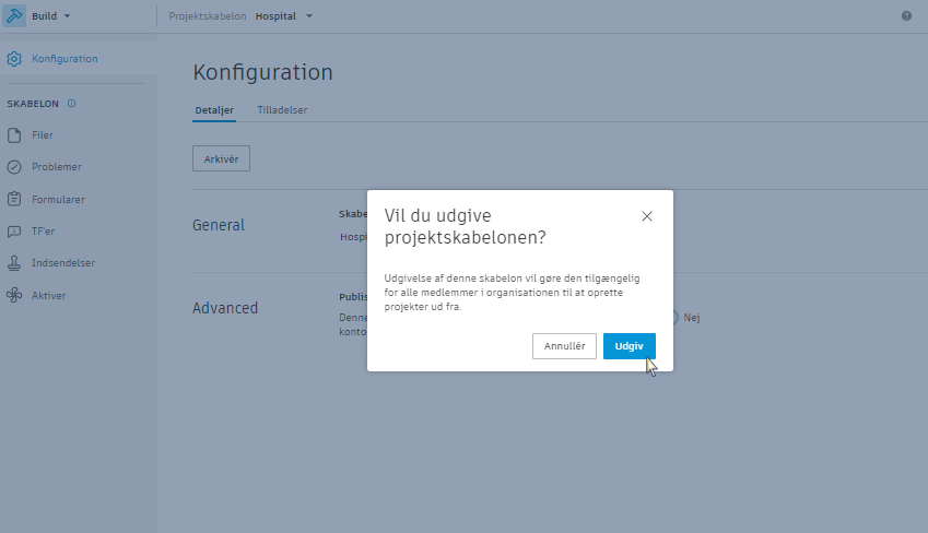 Når feltet Vil du udgive projektskabelon? vises, skal du klikke på Udgiv.