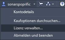 Nachdem Sie Produkte auf einzelnen Arbeitsstationen in Ihrem Netzwerk eingerichtet haben, können Sie oder Benutzer in Ihrem Netzwerk Lizenzen direkt in jedem Produkt verwalten. Hierzu verwenden Sie die Option Lizenz verwalten im Benutzerkontomenü, für das Ihr Benutzername angezeigt wird, nachdem Sie sich bei Autodesk Account angemeldet haben.