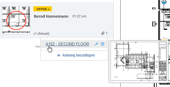 Sie können Markierungen in 2D- und 3D-Entwürfen erstellen, bearbeiten und an Projektmitglieder weitergeben.