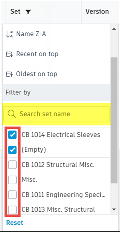 Tipp: Sie können auch das Kontrollkästchen neben dem gewünschten Satz oder Sätzen aktivieren, um die benötigten Dokumente schnell zu finden.