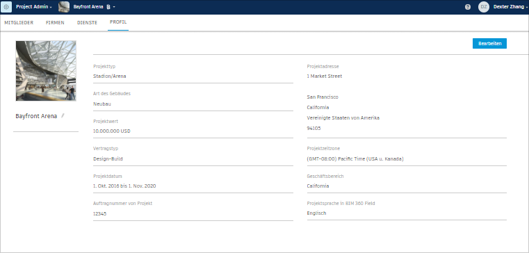 Klicken Sie im Abschnitt mit den Projektinformationen auf Bearbeiten, um Änderungen in den folgenden Feldern vorzunehmen: