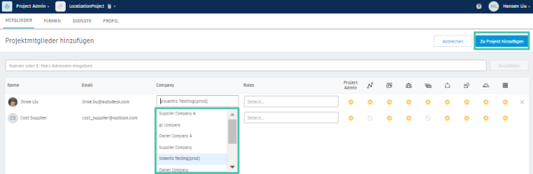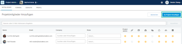 Wiederholen Sie die Schritte 2 bis 4, um mehrere Mitglieder gleichzeitig zu einem Projekt hinzuzufügen.