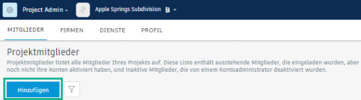 Als Projektadministrator können Sie einem Projekt Kontomitglieder hinzufügen und festlegen, auf welche aktivierten Module sie zugreifen können. Sie können auch Einladungen für Projekte erneut senden und Mitglieder aus einem Projekt entfernen.