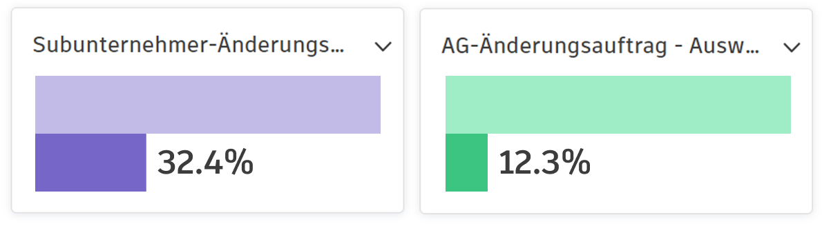 Diese Karte zeigt die durchschnittliche Zeit an, die für die Genehmigung von AG-Änderungsaufträgen und die Ausführung von Subunternehmer-Änderungsaufträgen in einem Projekt benötigt wird. Sie bietet Einblicke in die Effizienz der Änderungsauftragsprozesse, indem sie anzeigt, wie lange die Erledigung dieser Aufgaben durchschnittlich dauert.