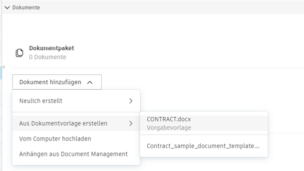 Sie können die Dokumentvorlage als Vorgabe festlegen, sodass sie als erste in der Liste der verfügbaren Dokumentvorlagen angezeigt wird.