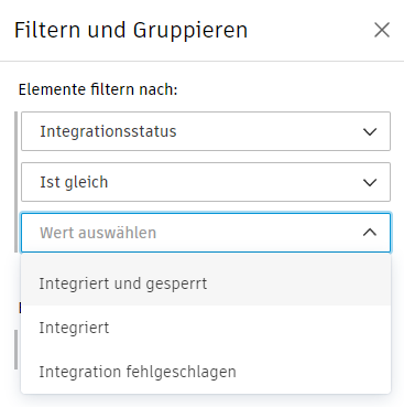 Sie können die Tabellenansicht auch nach dem Status der Integration filtern: