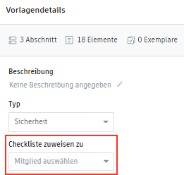Um einen Vorgabebeauftragten hinzuzufügen, fügen Sie während der Vorlagenerstellung einen Checklisten-Beauftragten im Detailabschnitt der Vorlage hinzu.