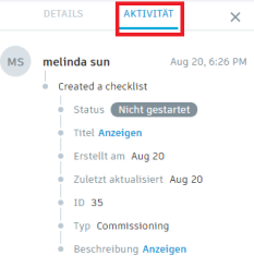 Die Aktivitätenverfolgungsdaten für Checklisten werden seit dem 31. August 2021 erhoben. Checklisten-Aktivitäten, die nach diesem Datum stattgefunden haben, werden im Aktivitätsprotokoll aufgezeichnet. Aktivitäten, die vor diesem Datum stattfanden, werden jedoch nicht im Protokoll angezeigt.