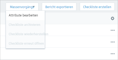 Mithilfe von Massenvorgängen können Sie mehrere Checklisten gleichzeitig bearbeiten, archivieren, wiederherstellen oder erneut öffnen. Die Verfügbarkeit dieser Aktionen hängt vom Checklisten-Status ab: