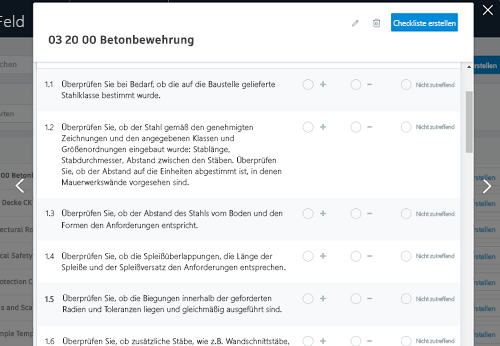 Sie können für Ihr Projekt aus den Checklistenvorlagen für bestimmte Auswertungen in den Kategorien Qualität, Sicherheit, Aufgabenlisten und Inbetriebnahme auswählen. Es gibt zwei Möglichkeiten zum Erstellen einer Checkliste aus einer Vorlage.