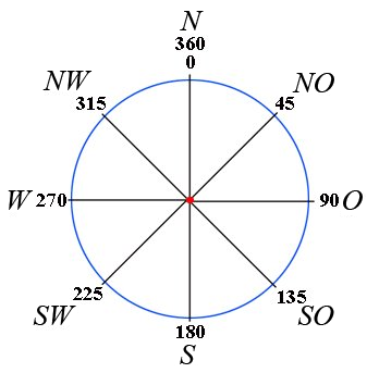 Die Azimut-Eingabe erfolgt mit Werten zwischen 0 und 360, wie auf einem Kompass. Der Azimut oder andere Versätze werden nicht als Attribute auf einem Punkt gespeichert. Sie werden verwendet, um eine neue Position für den Punkt zu berechnen. Der Punkt wird verschoben, sobald die Versatzeingabe abgeschlossen ist.